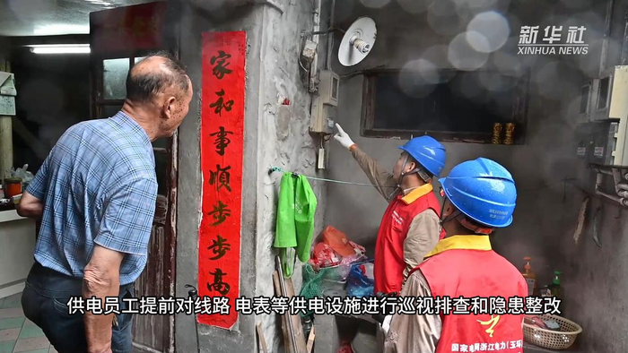 在玉环市东沙渔村,供电员工提前对线路、电表等供电设施进行巡视排查和隐患整改,并入户告知沿海村民台风期间安全用电事项。