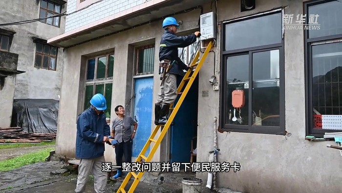 在临海白水洋镇大雷山,供电员工对高低压线路展开拉网式排查,并深入山区孤寡老人家中,逐一整改问题,并留下便民服务卡,告知“24小时电力服务热线”。