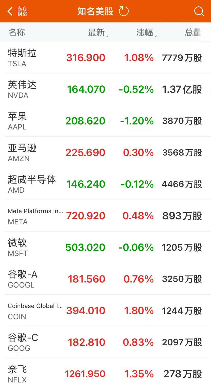 中概股多数上涨,纳斯达克中国金龙指数收涨0.73%。蔚来涨超7%,腾讯音乐、哔哩哔哩涨超4%,阿里巴巴、小鹏汽车涨超1%,百度跌超1%,拼多多跌超2%。