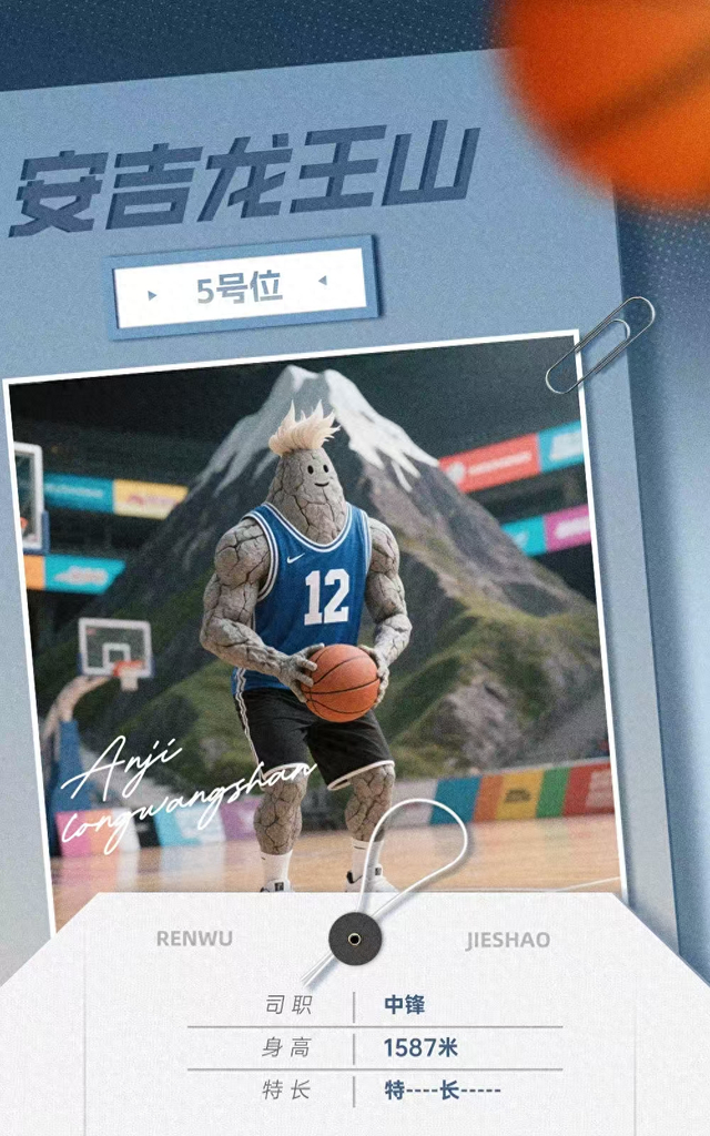 湖州安吉县推出一套“参赛阵容”,中锋“龙王山”身高1587米。