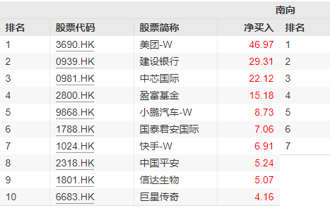 截至7月11日,近7日以来,恒生科技ETF基金(513260)、港股通科技30ETF(520980)标的指数成分股美团、中芯国际、小鹏汽车、快手获南向资金青睐,净买入金额分别达46.97亿、22.12亿、8.73亿、6.91亿港元。