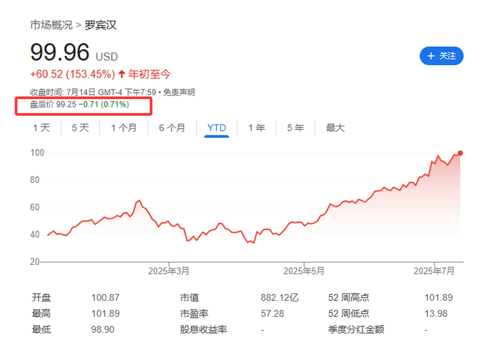 这一消息立即引发市场失望情绪,Robinhood股票在盘后交易中一度下跌约1%;相反,The Trade Desk股价应声上涨14%。Trade Desk的入选令市场意外,因为其市值仅为370亿美元,远低于Robinhood的880亿美元。后者今年以来股价飙升168%,被广泛视为指数扩容的热门候选,甚至是“头号候选者”。