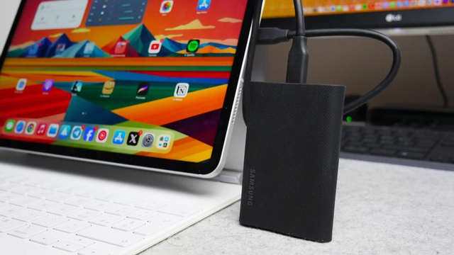 视频素材有了可靠的存储与快速的传输保障后,剪辑环节也非常重要。在过去,视频剪辑往往依赖电脑和工作站等专业设备,不仅携带不便,而且操作也比较复杂,但如今都变得简单起来。三星T9移动固态硬盘身形仅有名片大小,不仅便携性拉满,还支持电脑、智能手机和平板三端数据同步,例如与iPad的搭配,无需设置即可直接访问其中的视频素材。