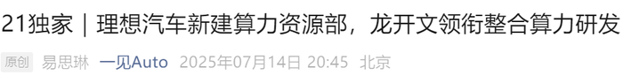 电动知家消息,7月14日,据21 世纪经济频道“一见 Auto”报道,为了支撑后续自研大模型的部署和应用,理想汽车对"系统与计算群组"进行架构调整,新成立算力资源部和企业智能部。