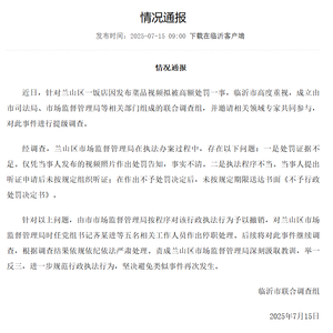 让张女士没有想到的是,就在法院对她的行政诉讼案件立案的第二天,7月11日晚,兰山区融媒体中心发布的情况通报称,5月12日市监局已综合事实和危害程度,决定不再作出行政处罚并告知当事人。这份通报的落款为“兰山区联合调查组”。