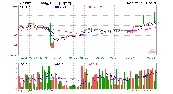 7月15日,截止午间收盘,800增强ETF(159517)跌0.09%,报1.113元,成交额803.08万元。800增强ETF(159517)重仓股方面,贵州茅台截止午盘跌0.96%,中国平安跌0.82%,宁德时代跌0.91%,工商银行跌0.64%,紫金矿业跌1.05%,京东方A跌1.98%,美的集团跌0.31%,长江电力跌0.72%,潍柴动力跌0.78%,交通银行跌0.61%。