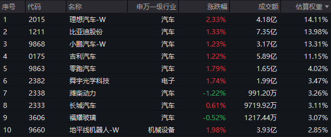 【港股汽车ETF(159210)标的指数前十大成分股】
