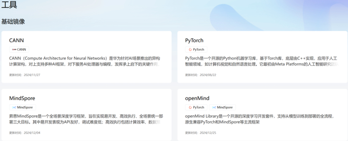 第一件事,是把原来的「镜像中心」升级为「工具中心」,位置也从「更多」菜单一跃来到首页 C 位,对标模型库、数据集 ——
