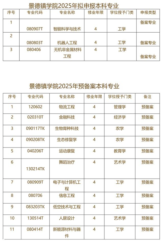 根据教育部《普通高等学校本科专业设置管理规定》等文件精神,结合学校办学定位及实际情况,经学院申报、教学指导委员会评议、学校党政联席会审议,拟推荐申报智能科学与技术、机器人工程、无机非金属材料三个新专业,拟预备案物流工程、金融科技等专业。