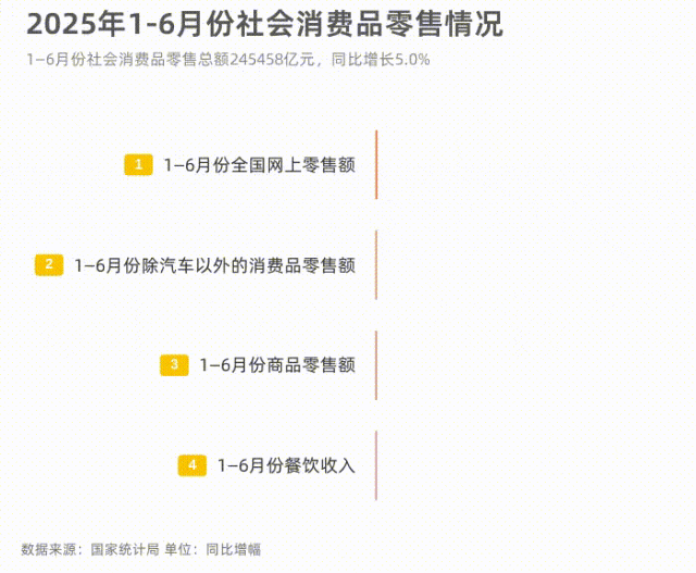 从数据看,上半年,社会消费品零售总额245458亿元,同比增长5.0%,比一季度加快0.4个百分点;服务零售额同比增长5.3%,比一季度加快0.3个百分点。