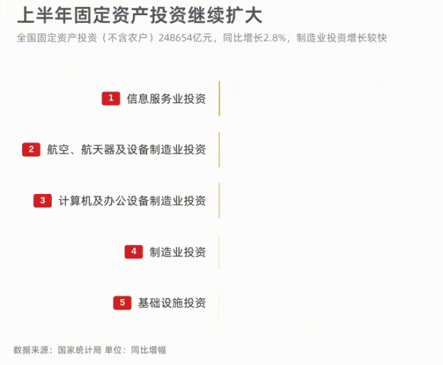 上半年固定资产投资24.9万亿元,同比名义增长2.8%,较一季度的4.2%有所回落。