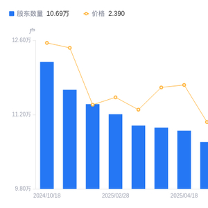 近一年(2024年7月19日至2025年7月10日),华侨城AA股股东户数从11.22万户,减低至10.69万户,降幅4.71%,区间股价上涨17.16%。