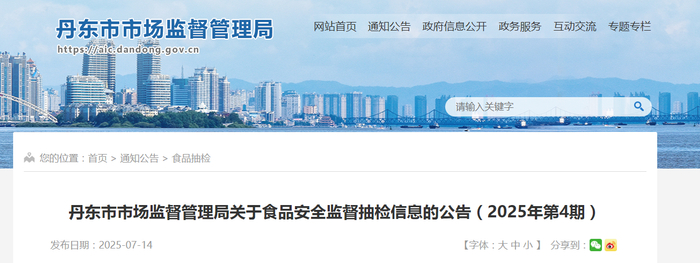 辽宁省丹东市市场监督管理局关于食品安全监督抽检信息的公告(2025年第4期)