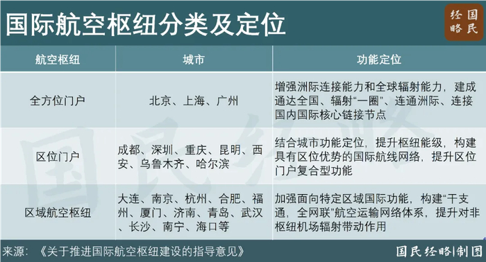 强化北京、上海、广州等国际航空枢纽全方位门户复合型功能;