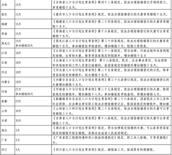 2025年31省份婚假一览表