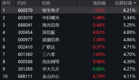 截至收盘,信创50ETF(560850)标的指数成分股多数飘红:致远互联上涨10.85%,泛微网络、用友网络涨停,浪潮信息、金山办公等个股跟涨。