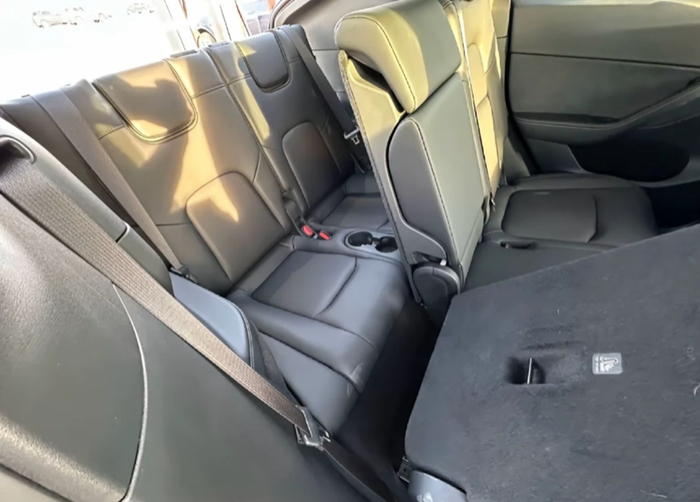 一是会加长吗?我觉得加长是非常有必要的,大家可以看看图上美国那边已经停产了的七座Model Y,这就是没有加长的效果,我已经不想说什么了,这样的空间照搬到国内毫无意义。有消息说国内轴距会加长15厘米,我觉得这个数值是合理的。
