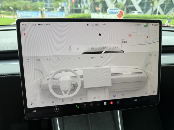 首先是屏幕换挡,踩下刹车,中控屏幕左上角会出现“虚拟换挡条”,往上滑是D挡,往下滑是R挡,中间是P挡。这个问题倒是不大,开个两天就能适应。