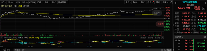 港股早盘一度大幅拉高,但受情绪影响,中午收盘时段有所跳水,但午后港股市场再度迎来大反攻。下午三点过后,恒生科技指数上涨近2.8%,恒生指数、国企指数涨幅皆达到了1.5%左右。