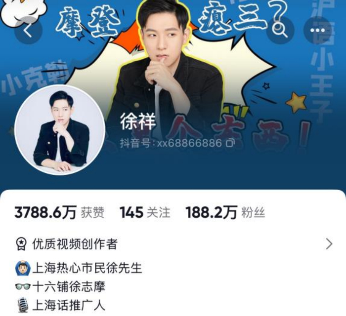 很多人认识徐祥,都是从他在抖音上推广沪语开始的。
