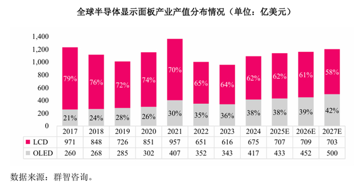 近年来,受益于下游终端产品多元化需求的推动,全球半导体显示面板产业呈现平稳增长态势。作为人机交互的核心载体,半导体显示面板已广泛应用于下游电视、显示器笔记本电脑、平板电脑、手机、可穿戴设备等消费类电子产品以及商业显示、汽车电子、工业控制、智慧物联等专业显示。