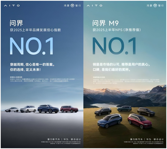 专业咨询机构杰兰路刚刚发布的《2025年度上半年新能源汽车品牌健康度研究》报告显示,问界M9荣获2025上半年NPS(净推荐值)NO.1,问界荣获品牌发展信心指数NO.1。由此也说明,问界品牌和问界M9的优秀成绩由一声声用户好评撑起。