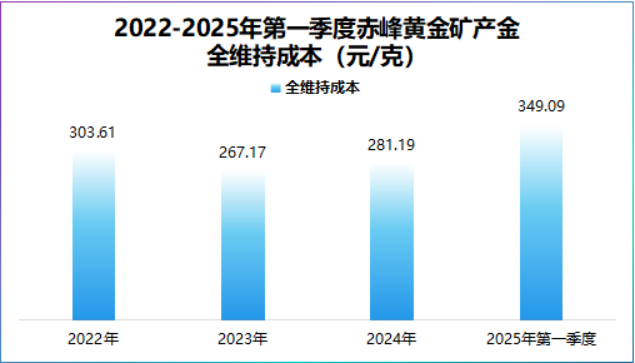 2024年赤峰黄金矿产金全维持成本为281.19元/克,同比小幅上涨5.25%,2025年第一季度这一全维持成本进一步提高到了349.09元/克。