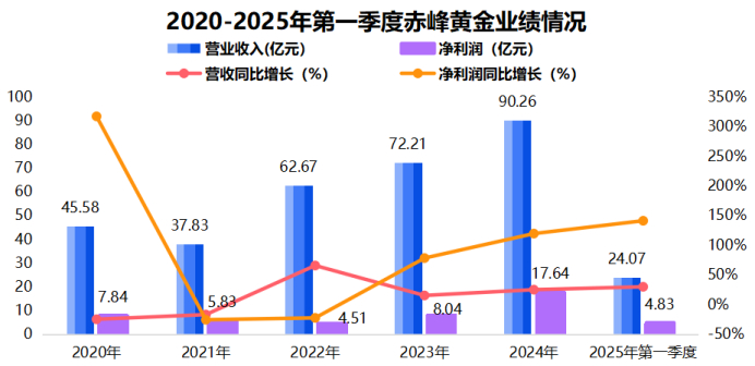 2024年赤峰黄金实现营收90.26亿元,同比增长24.99%,实现净利润17.64亿元,同比大增119.46%,堪比10年前的紫金矿业。