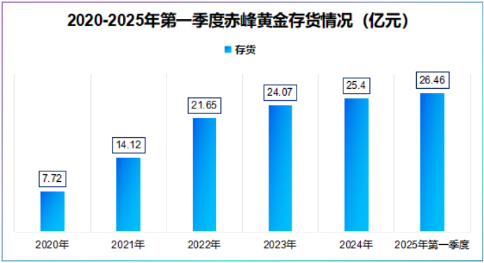 数据显示,2020-2024年赤峰黄金存货从7.72亿元持续攀升到25.4亿元,年复合增速达34.68%,当金价上涨是这些存货或许能成为业绩释放的利器。