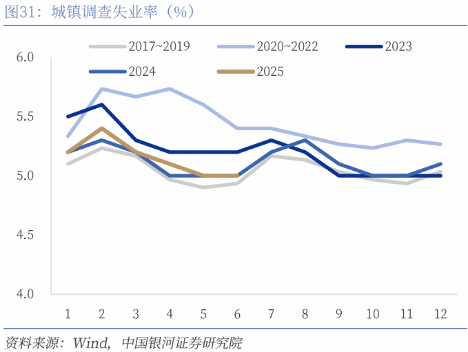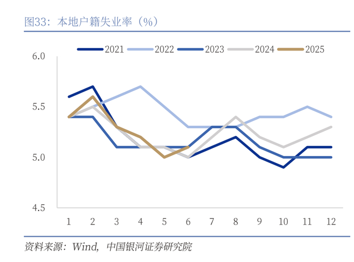 稳就业目标或推动更多政策出台。未来出口的不确定性仍然存在,对外向型用工需求的压制也会持续。同时2025年高校毕业生预计1222万人,叠加2023年离校未就业人员即将失去应届毕生生身份,导致暑期毕业高峰对就业市场压力增大。因此我们认为就业是观察政策发力的重要方向。