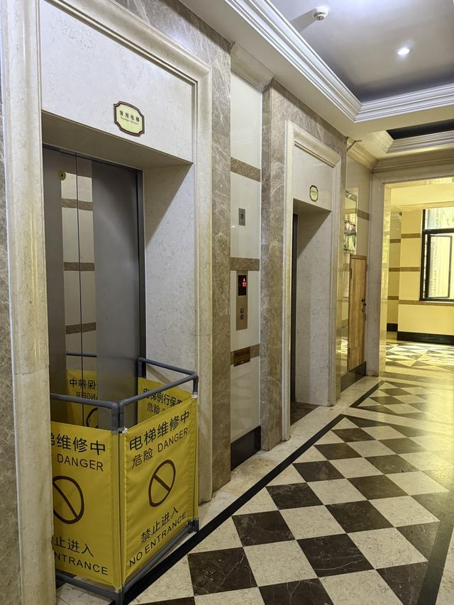 普罗旺斯紫罗兰庄园一部电梯在维修中。