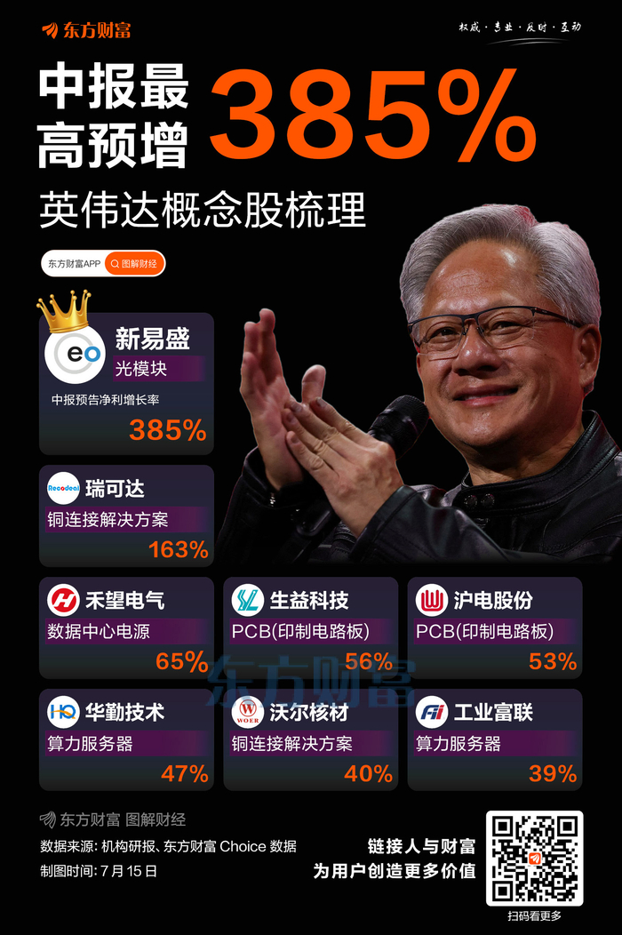 新易盛20CM!一图梳理英伟达概念中报高预增个股
