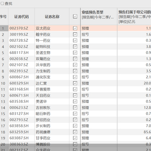 东方财富Choice数据显示,按预告净利润增长下限看,97只医药股中,有53股归属净利润出现同比增长,亚太药业业绩增幅最为亮眼,暂列“预增王”。