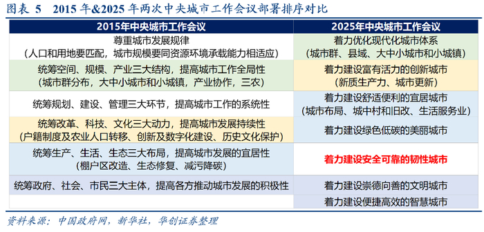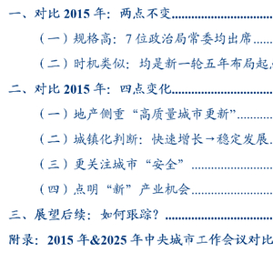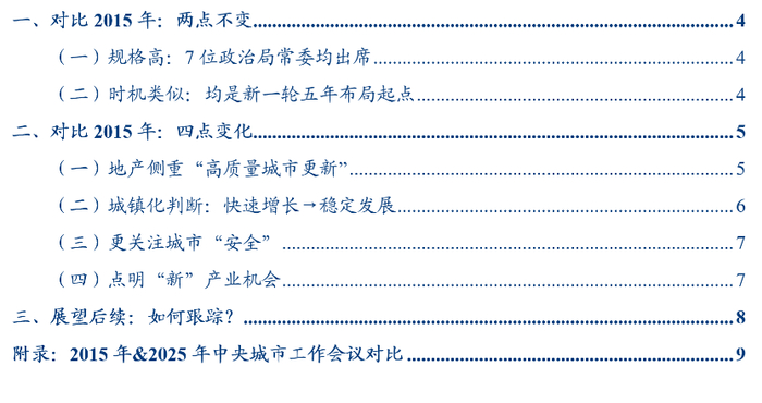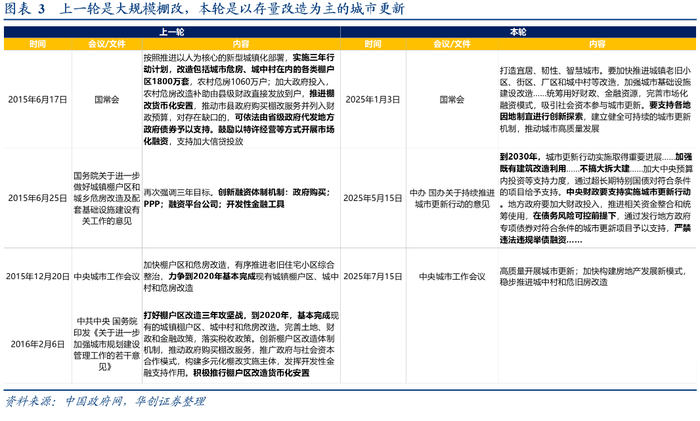 变化点之一在地产部署:2025年中央城市工作会议核心是“高质量开展城市更新”,区别于2015年中央城市工作会议的“大力推进”棚改三年计划。