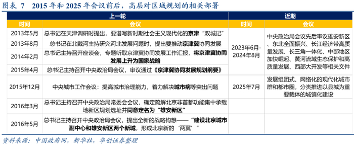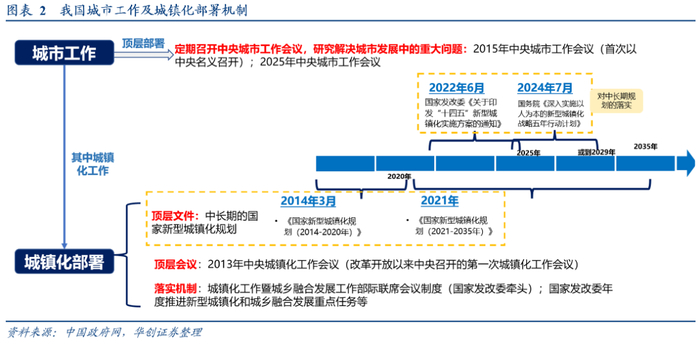 均是新一轮国家级五年规划和城镇化五年部署的起点。一方面,2015年、2025年分别是“十三五”“十五五”规划的谋划之年,中央城市工作会议部署,或能为我们前瞻五年规划中城镇化建设,提供一个可观测窗口。另一方面,2015年、2025年也同样是新一轮城镇化五年部署起点。上一次正值2014年《国家新型城镇化规划(2014-2020年)》发布次年,本次也是2024年《深入实施以人为本的新型城镇化战略五年行动计划》发布次年。