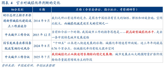 变化点之二在于:对城镇化发展判断的重大变化,通稿指出,“我国城镇化正从快速增长期转向稳定发展期”,这是高层首次公开对城镇化判断作出转变(基于公开可得信息)。