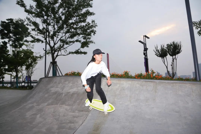 2023年8月31日,浙江杭州。钱塘江边玩滑板的年轻人。(图/新周刊)