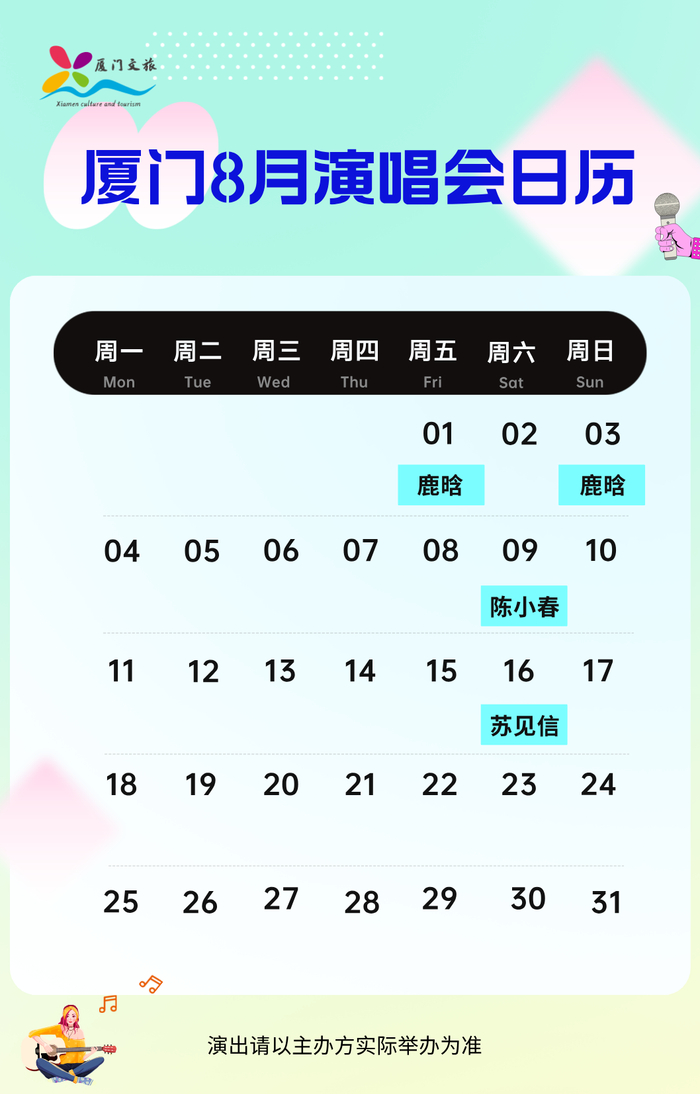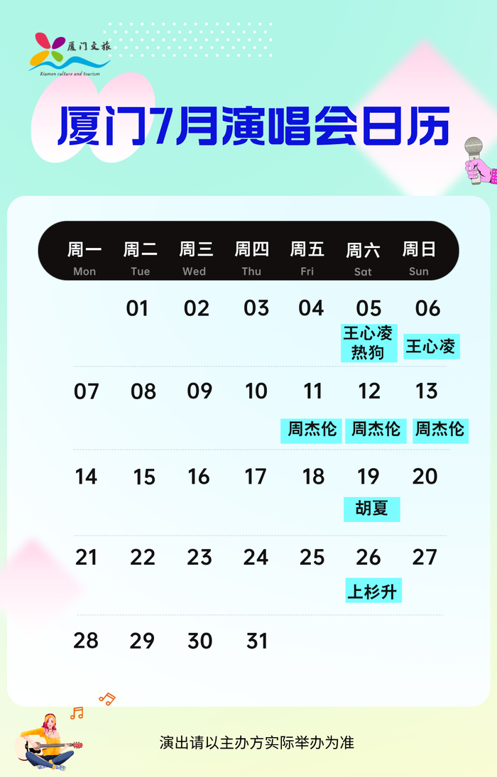 厦门暑期档演唱会最新日历公布