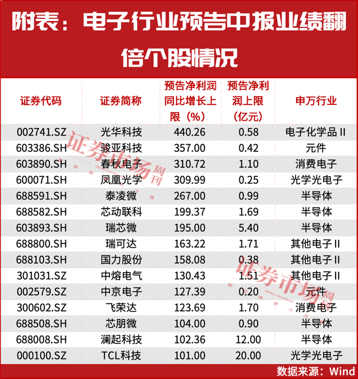 今年中报业绩预告显示,电子行业保持高增长。