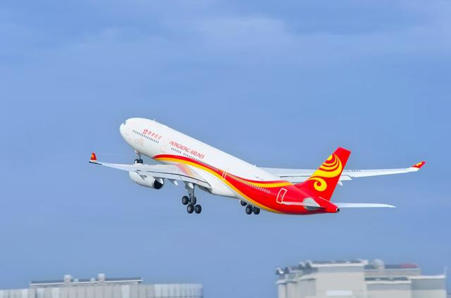一架香港航空的班机正在起飞香港航空