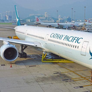一架停靠在机场的国泰航空班机《南华早报》