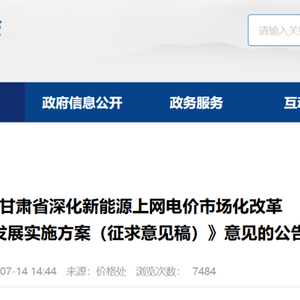 关于公开征求《甘肃省深化新能源上网电价市场化改革促进新能源高质量发展实施方案(征求意见稿)》意见的公告