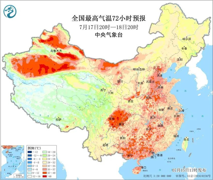 预计,陕西关中和汉中、山西西南部、河南中南部、湖北北部和西部、重庆北部、四川盆地南部、内蒙古西北部、新疆吐鲁番盆地和南疆盆地部分地区可达40℃以上。