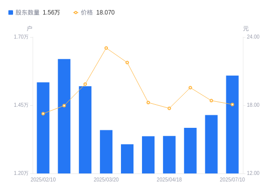 近一年(2024年7月10日至2025年7月10日),鑫铂股份A股股东户数从1.7万户,减低至1.56万户,降幅8.23%,区间股价上涨31.96%。