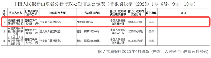 图 / 蓝海银行2025年4月和5月罚单