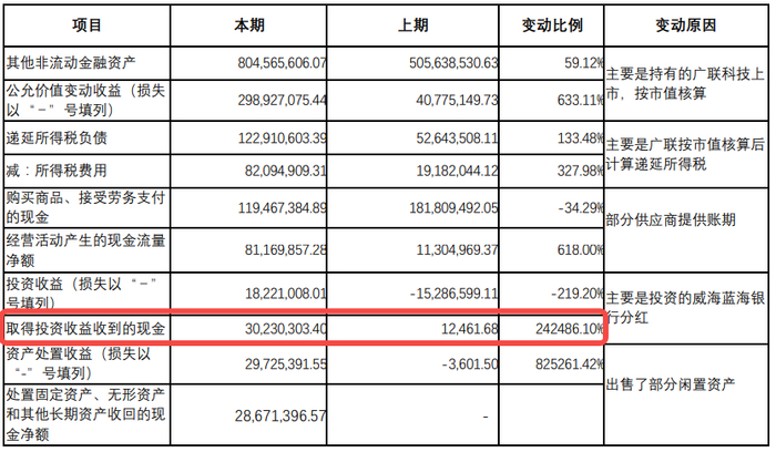 该行第五大股东兴民智通集团在其2024年三季度报告中,展示了从投资蓝海银行中所取得的投资收益现金为0.3亿元。