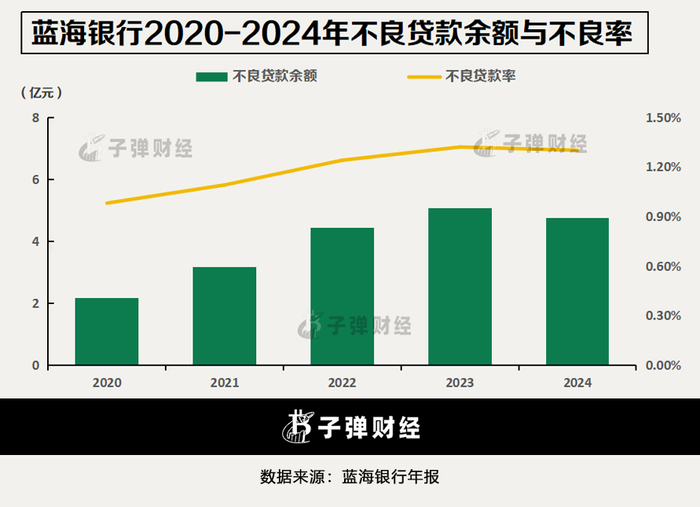 此前,金融监管总局披露了民营银行2024年各季度的净息差,分别为4.32%、4.21%、4.13%和4.11%,已看出回落态势。蓝海银行2024年净息差为2.35%,低于民营银行平均水平。