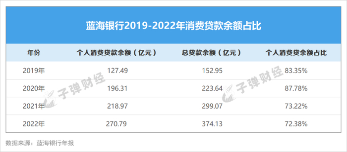 数据显示,2019至2022年,该行消费贷款余额占比分别为83.35%、87.78%、73.22%及72.38%,通过线上化平台实现跨区域营销。从2023年开始,该行年报不再披露消费贷款具体数据。
