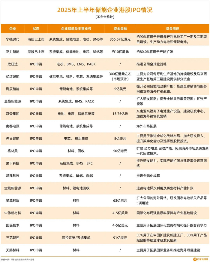据行家说储能不完全统计,上半年申请港股IPO的储能相关企业有18家。其中,宁德时代和正力新能源已成功上市。