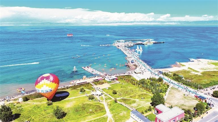 7月的青海湖碧波荡漾,各地游客在这里感受生态之美。 图片由青海湖旅游发展集团有限公司提供
